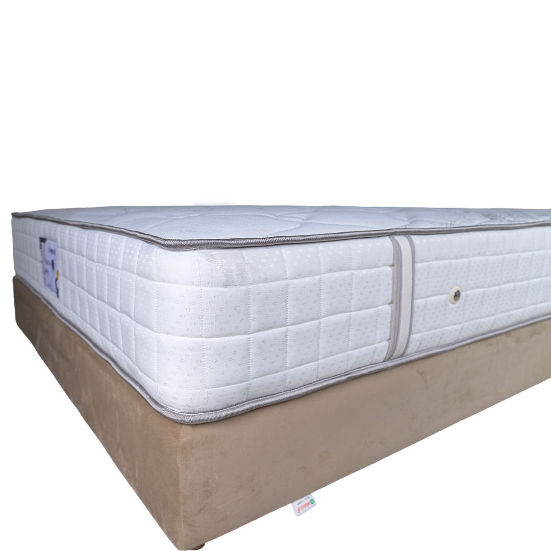 الطبقات الداخلية من الإسفنج عالي الكثافة والفايبر المرن توفر راحة إضافية وملمساً ناعماً، بينما يعمل الغطاء الدبل نت الفاخر مع فتحات التهوية على إبقاء المرتبة منتعشة وخالية من الرطوبة والحرارة الزائدة. إضافة إلى ذلك، تأتي المرتبة مزودة بمقابض جانبية لتسهيل التدوير وضمان استخدام أطول